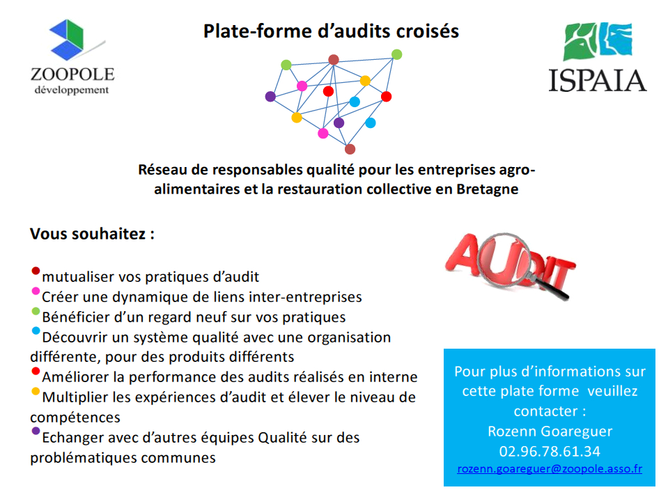 Pour mutualiser ces pratiques d’audit et disposer des ressources nécessaires (temps, moyens humains), ZOOPOLE développement - ISPAIA met en place une plateforme d’audits croisés pour les entreprises agroalimentaires et restauration collective bretonnes.