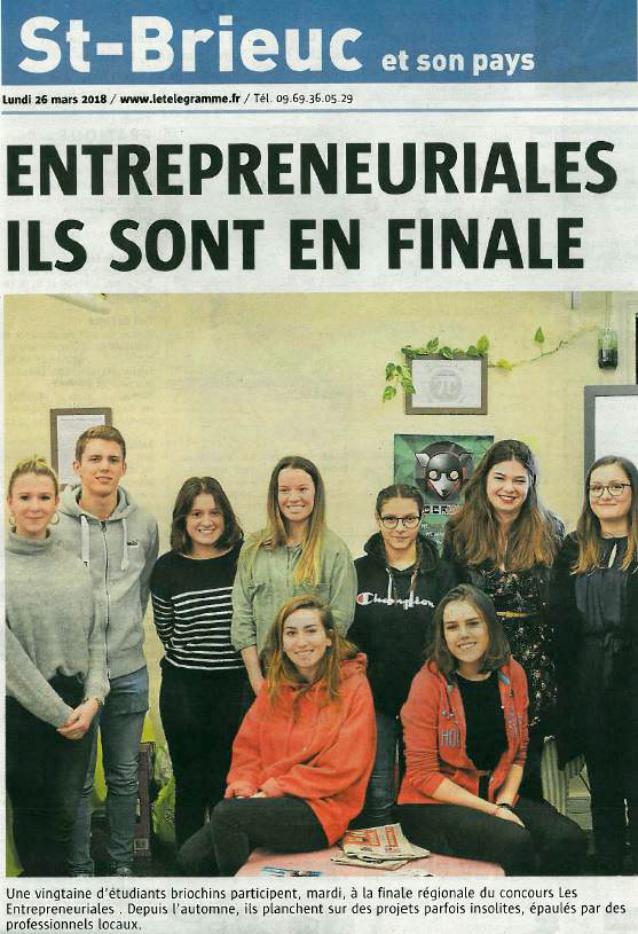 Les Entrepreneuriales sont un concours national qui voit se mesurer des équipes d'étudiant-e-s. Entre octobre et mars, ces équipes doivent construire, à partir d'une idée originale, le meilleur projet d'entreprise pour espérer remporter l'un des prix régionaux ou le prix national. Cette année, 15 étudiants du Pôle Sup et de l'IUT de Saint-Brieuc, composant 4 équipes, sont allés jusqu'au bout de l'aventure et jusqu'à la finale, le 27 mars à Lorient.
