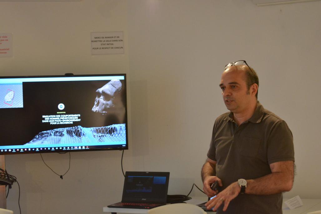 Après cette table ronde, place à un entrepreneur témoignant d'un projet collaboratif très original : Philippe CARREZ, fondateur de la startup SubOceana-ImmersionTools, nous a raconté la génèse du projet SCHOPPER, projet de reconstitution, grâce à l'intelligence artificielle et à la réalité virtuelle dont il est spécialiste, de la vie des hommes et des femmes préhistoriques sur le site de Tautavel.